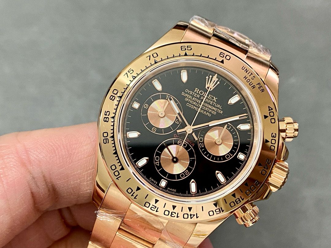 | Bezel | Everose gold tachymeter bezel (replica) |
